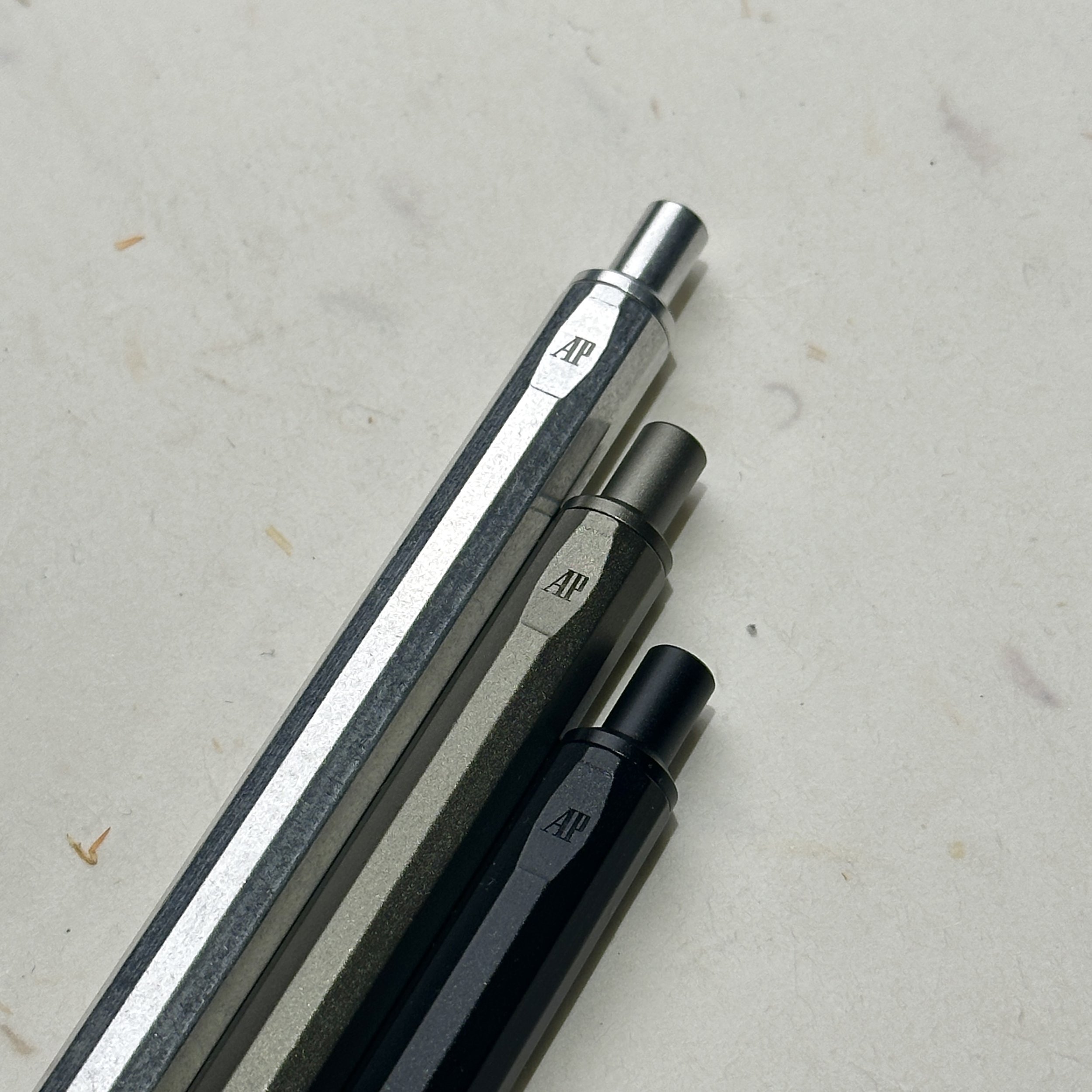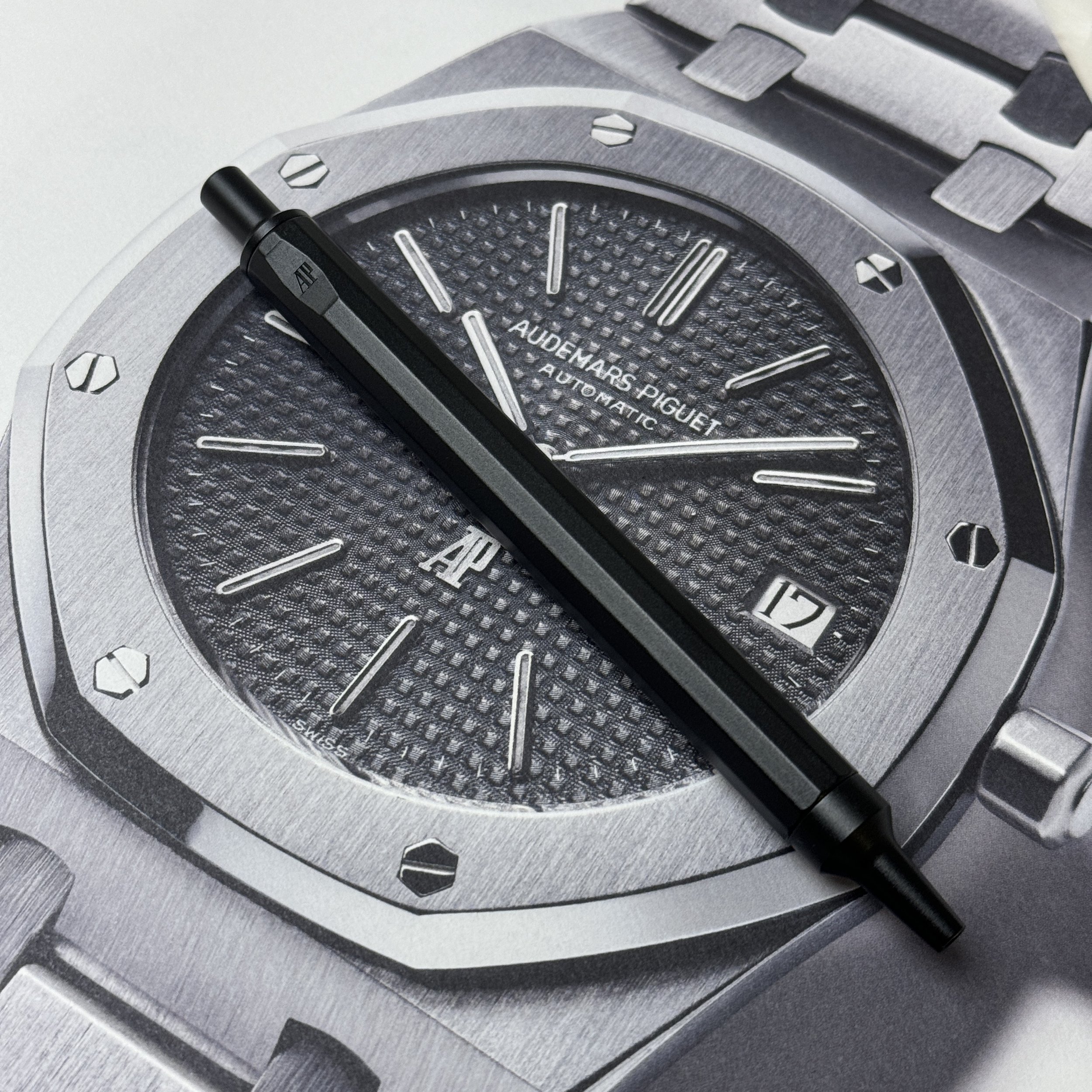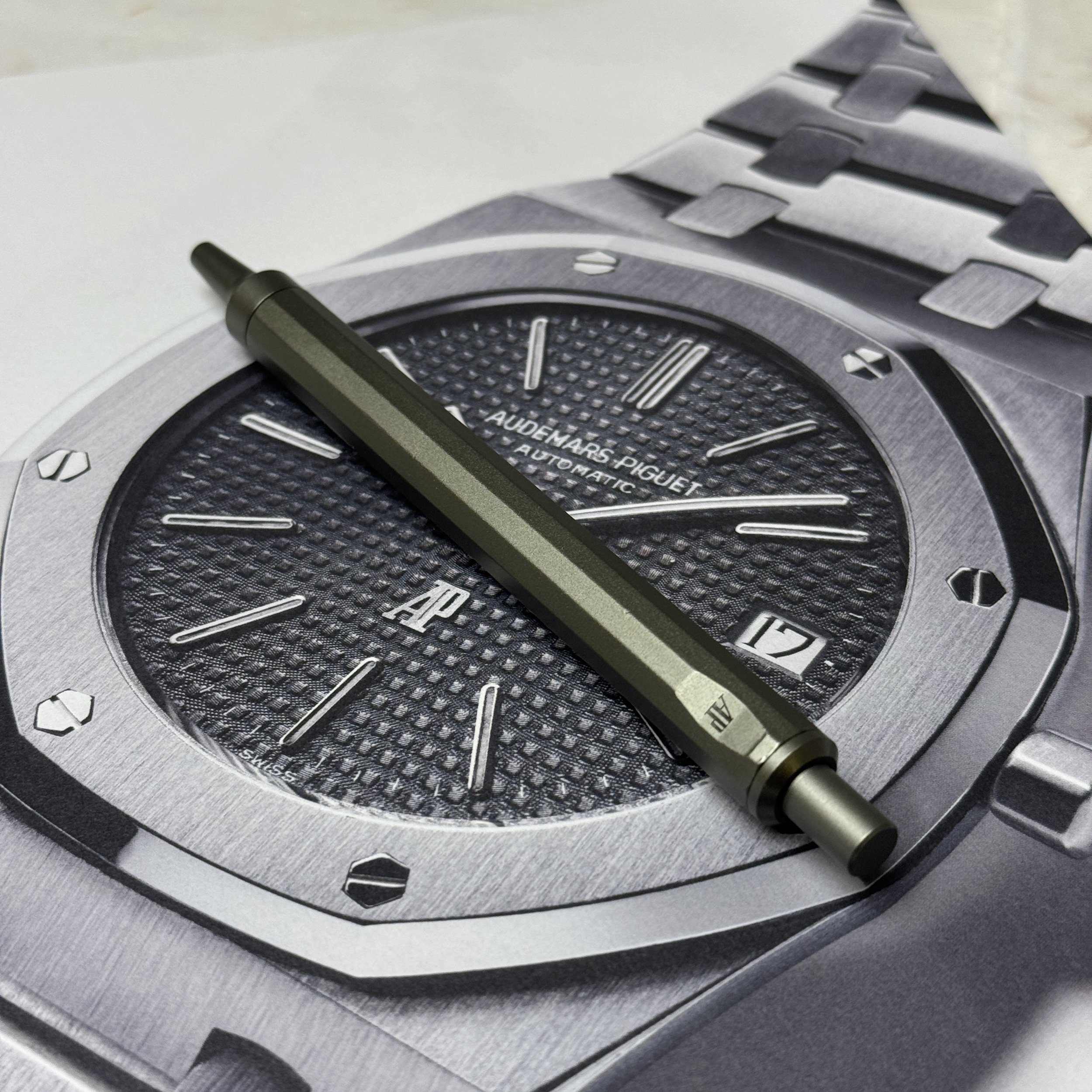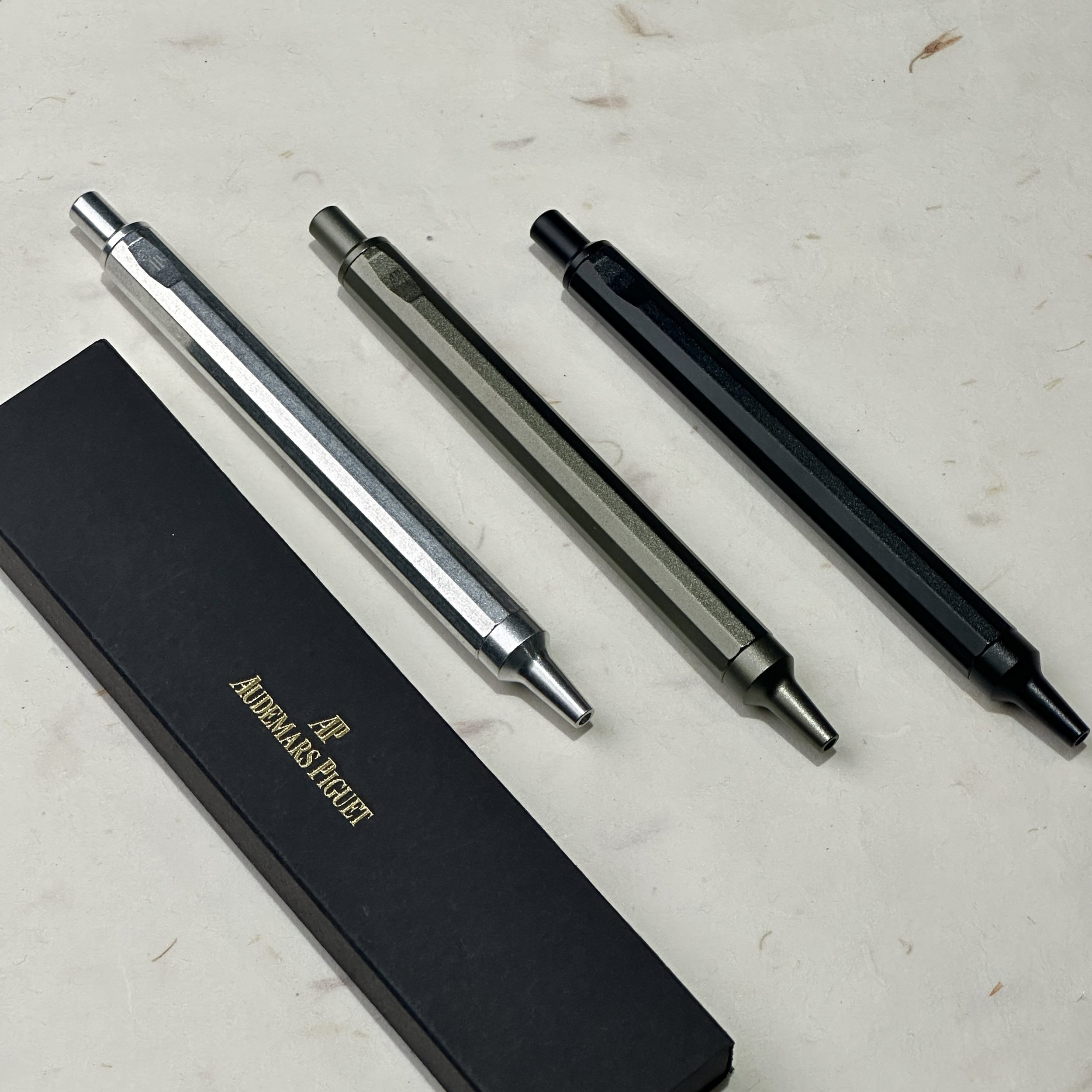 Introducing the Audemars Piguet Trilogy Pen Set: an exquisite collection that captures the essence of luxury, innovation, and history. Each pen, in gunmetal black, cosmic silver, and military green, showcases a futuristic design with minimalist elegance. The AP logo, laser-engraved on the handle, signifies exclusivity and the brand’s prestigious craftsmanship. Made from lightweight aluminum alloy, weighing only 22g, these pens offer comfortable maneuverability, ideal for extended writing sessions. This set is not just a collection of writing instruments but a statement of sophistication, reflecting Audemars Piguet’s legacy in creating timeless pieces for the connoisseur.