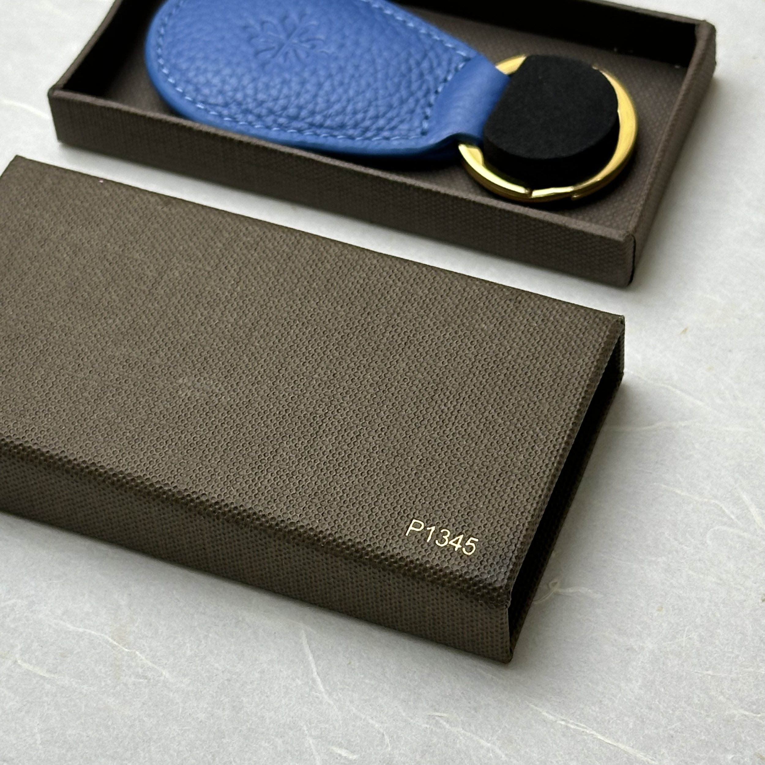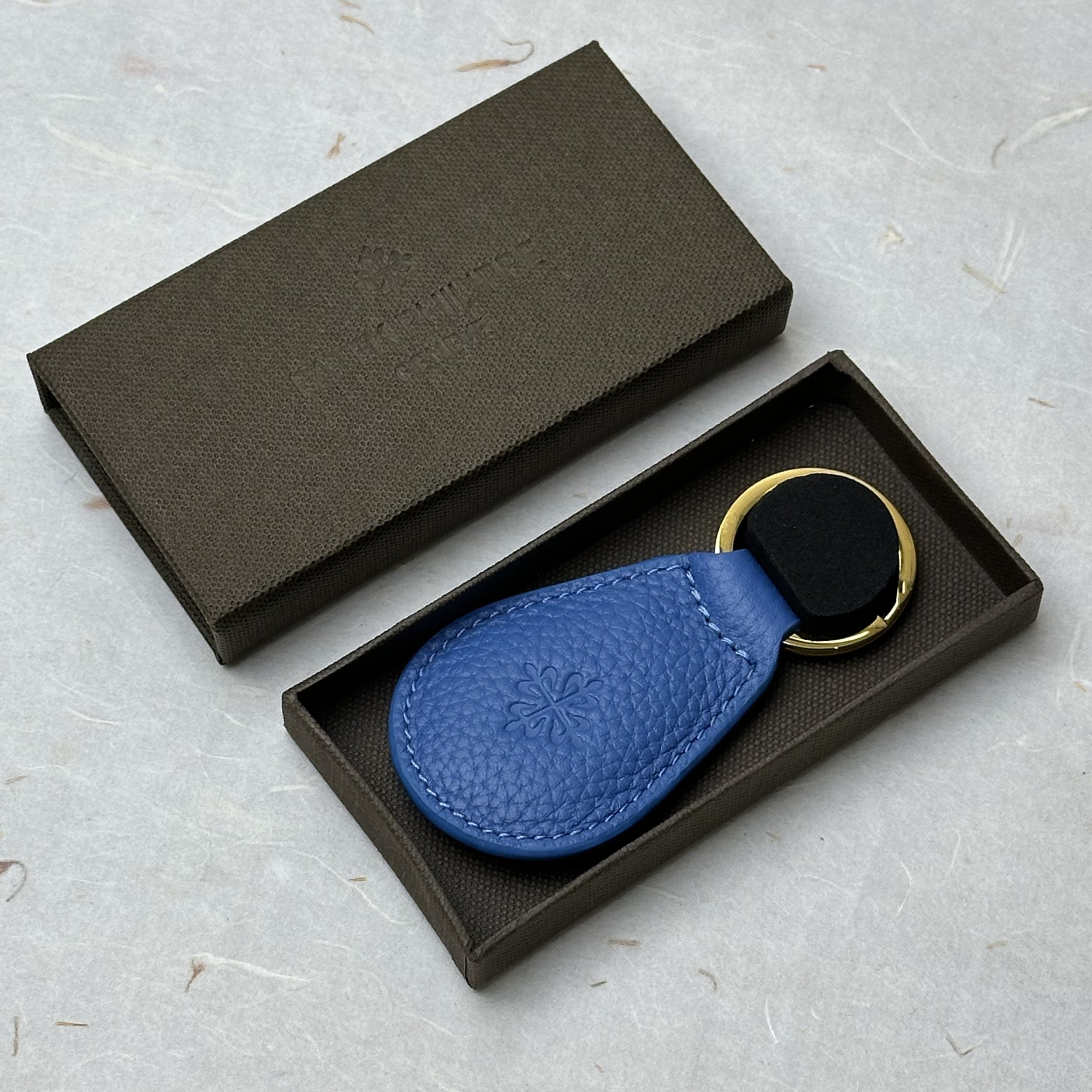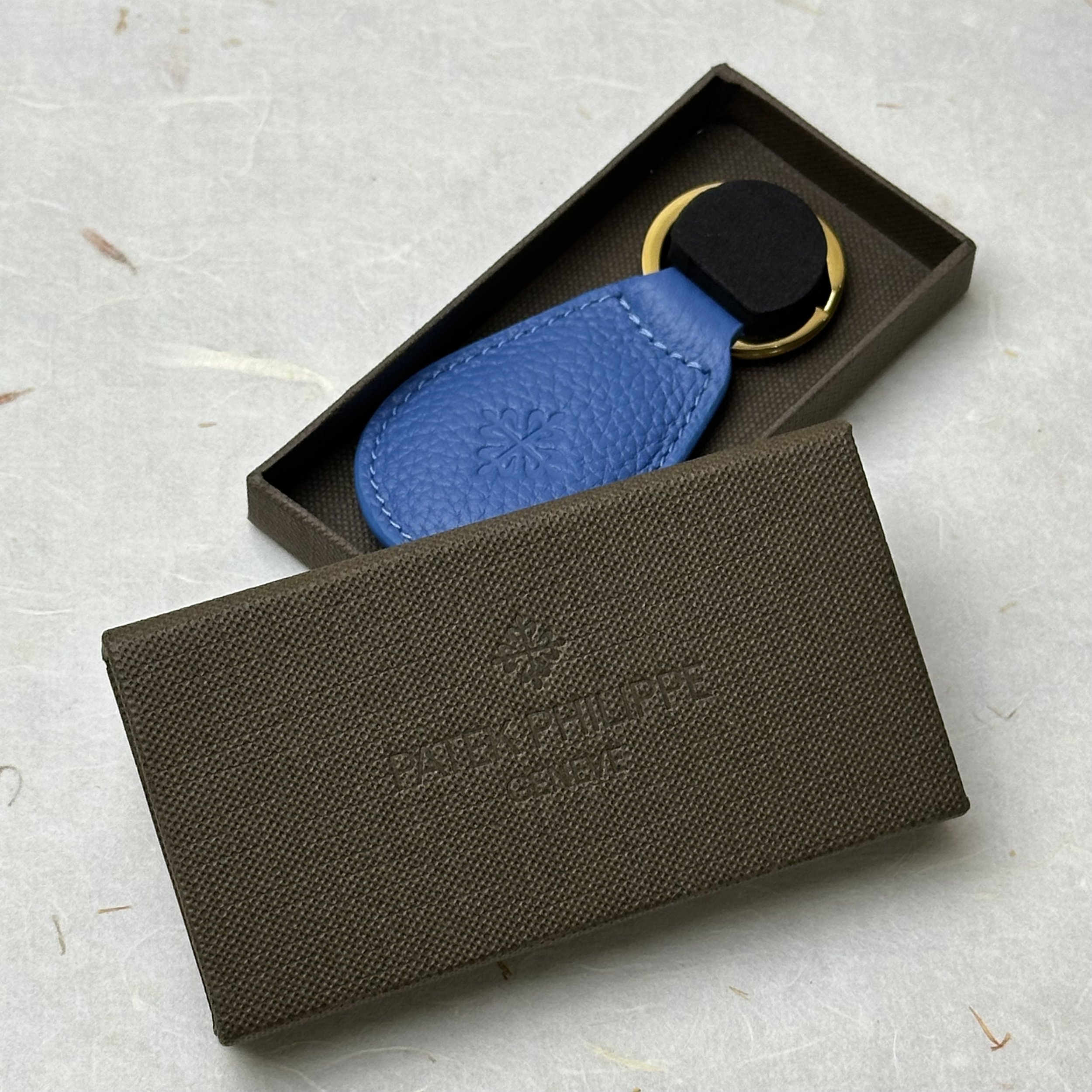 This Patek Philippe Azure Keychain is a paragon of luxury, meticulously hand-stitched and adorned with the esteemed Patek Philippe logo. The vibrant azure leather, a nod to the brand’s royal heritage, elegantly contrasts with the lustrous gold ring. Designed for the discerning individual, it symbolizes more than an accessory; it’s a small beacon of the legacy that Patek Philippe carries—a fusion of artisanship and timeless elegance.