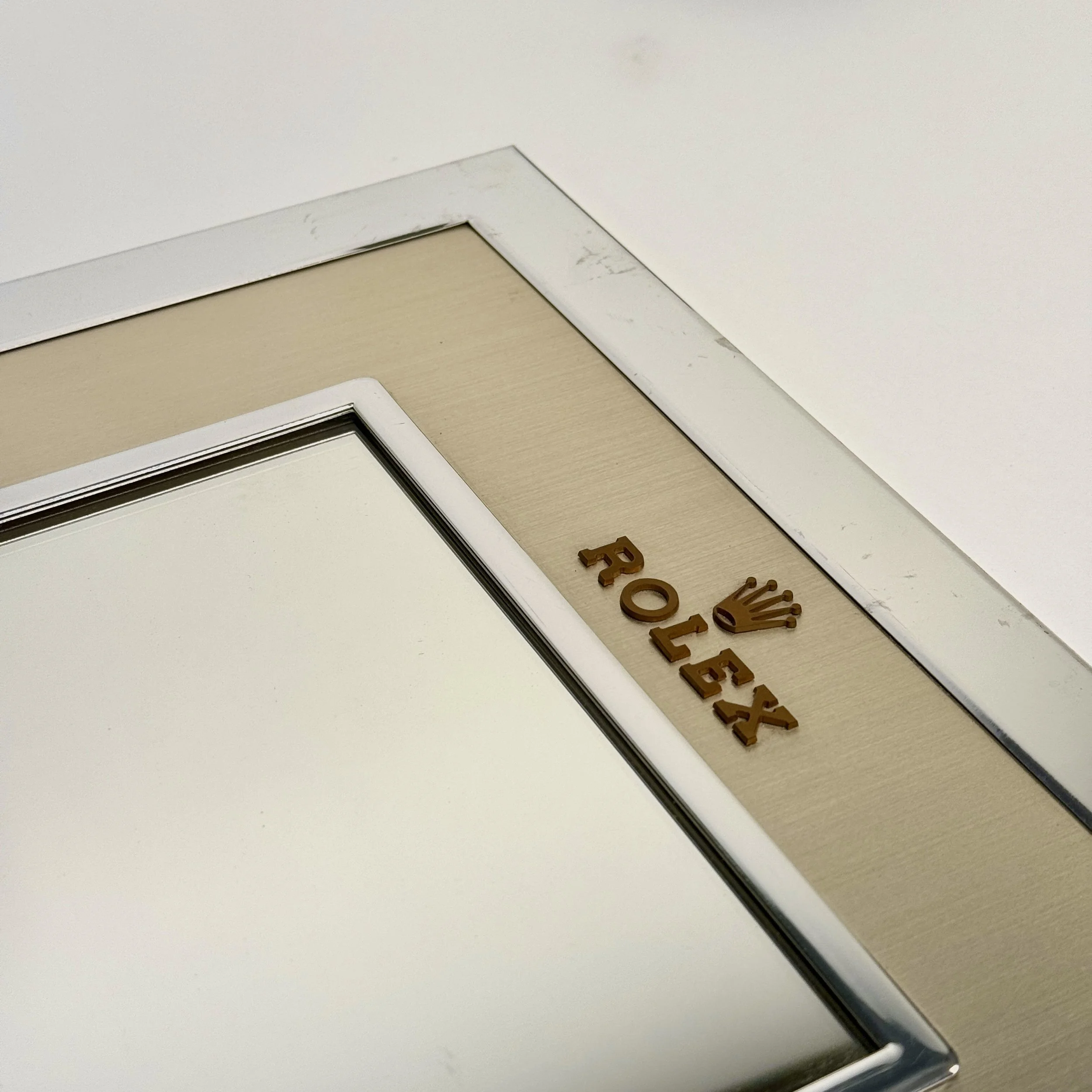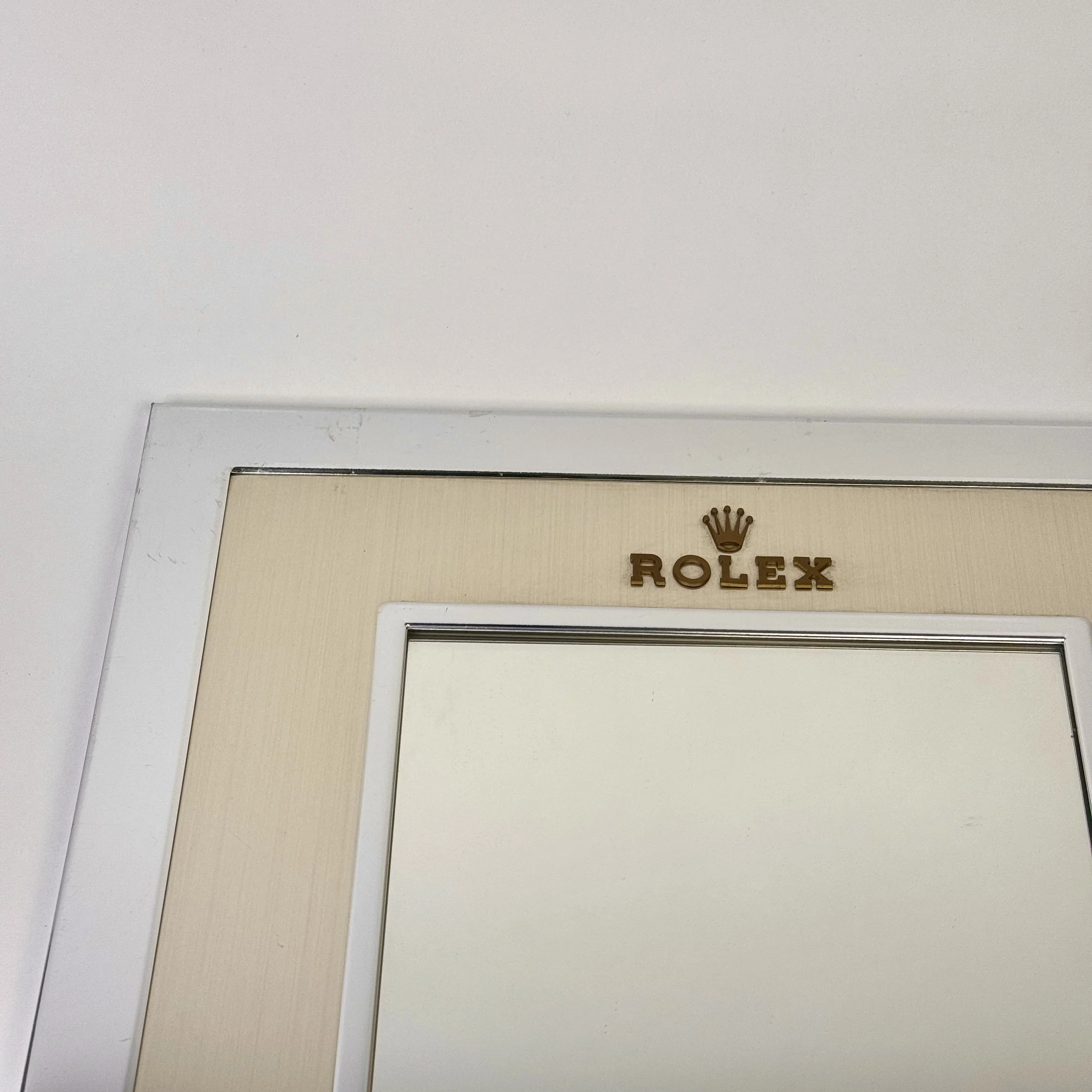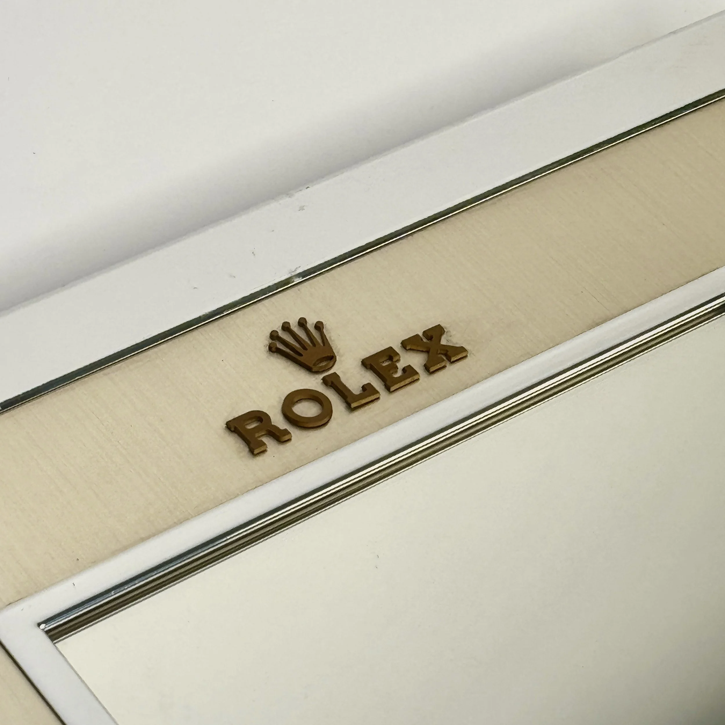 Manufactured in Switzerland, this authentic ROLEX mirror was likely used during promotional displays or store interiors, reinforcing the consistent luxury design language that ROLEX applies across all branded elements. Its minimalist yet commanding presentation evokes the same principles that define the Swiss horological giant: timelessness, clarity, and quality in every surface and edge.