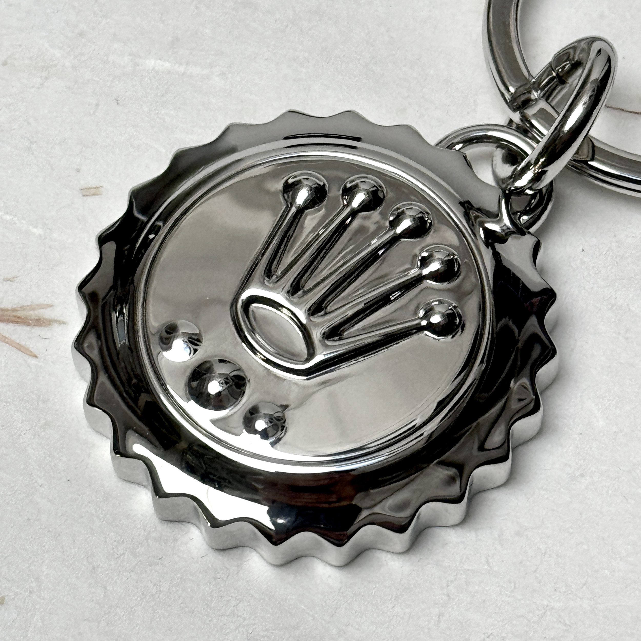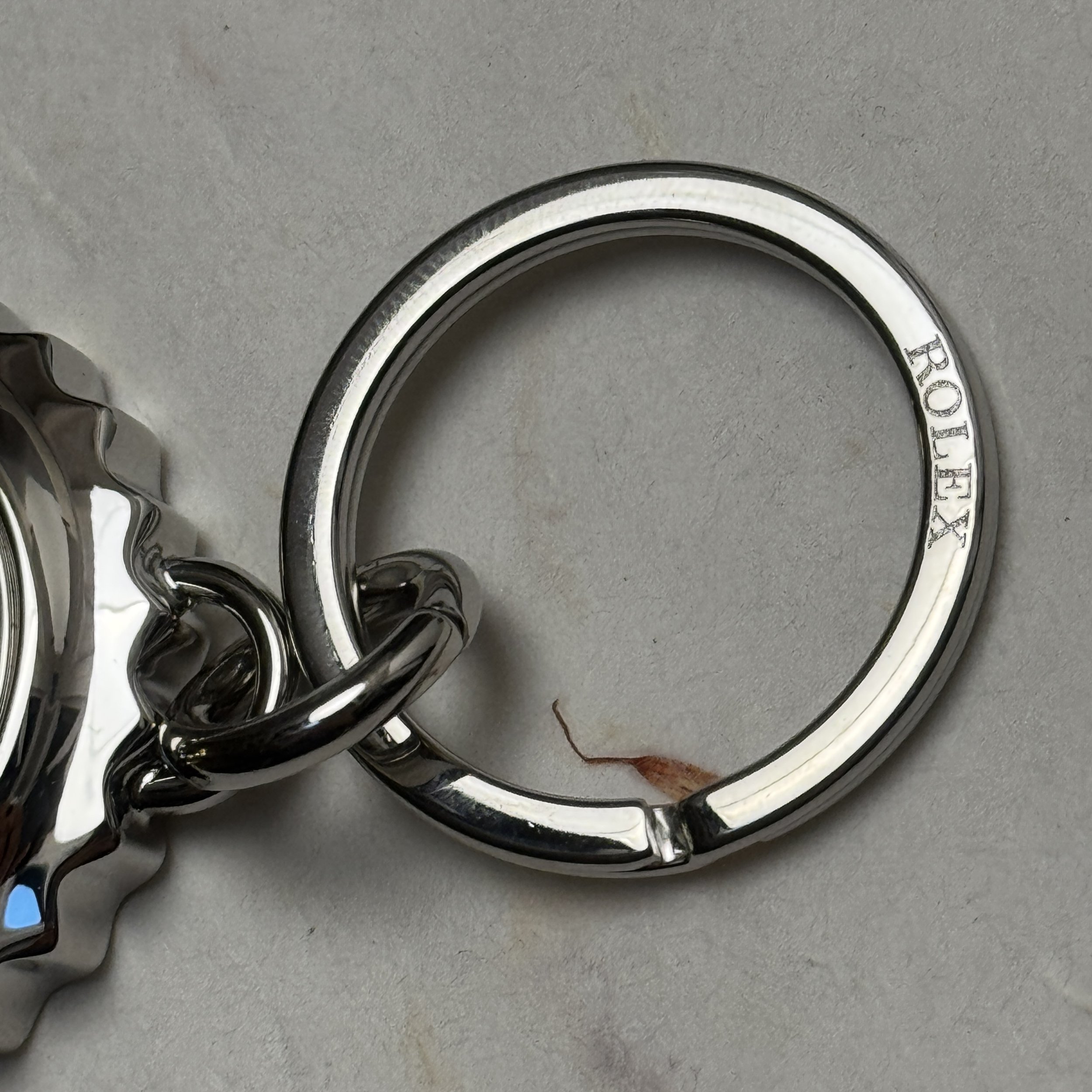 This exclusive Rolex Triplock Emblem Keyring is a distinguished collectible, crafted with precision to embody the luxury and heritage of the Rolex brand. Featuring the iconic Triplock crown emblem, this keyring boasts a polished metallic finish, giving it a refined and sleek appearance. The circular emblem is inspired by Rolex’s Triplock winding crown design, a hallmark of the brand’s commitment to water resistance and durability. Packaged in a classic Rolex gift box, this keyring is a VIP gift item, making it a rare and valuable addition to any enthusiast’s collection. This piece is a perfect gift for watch lovers and brand enthusiasts.