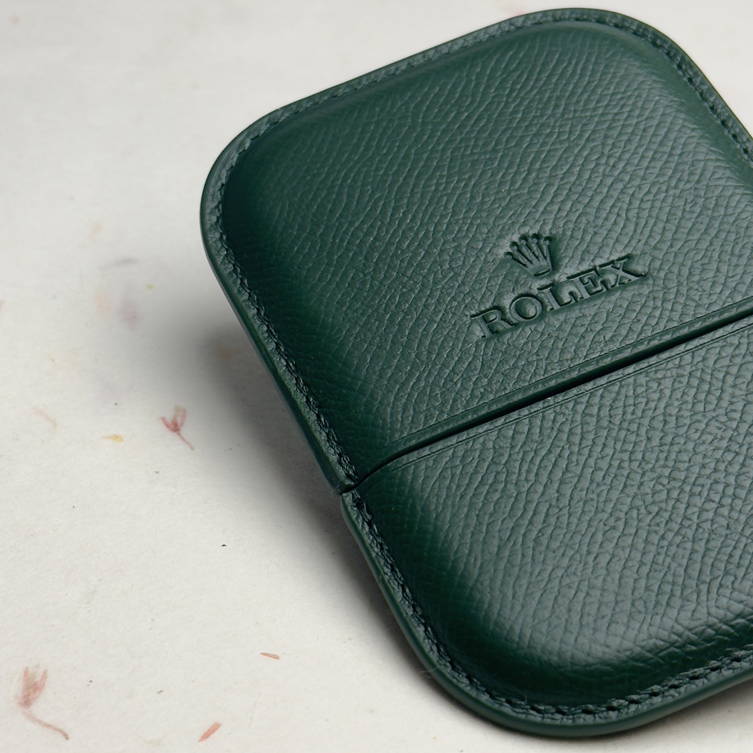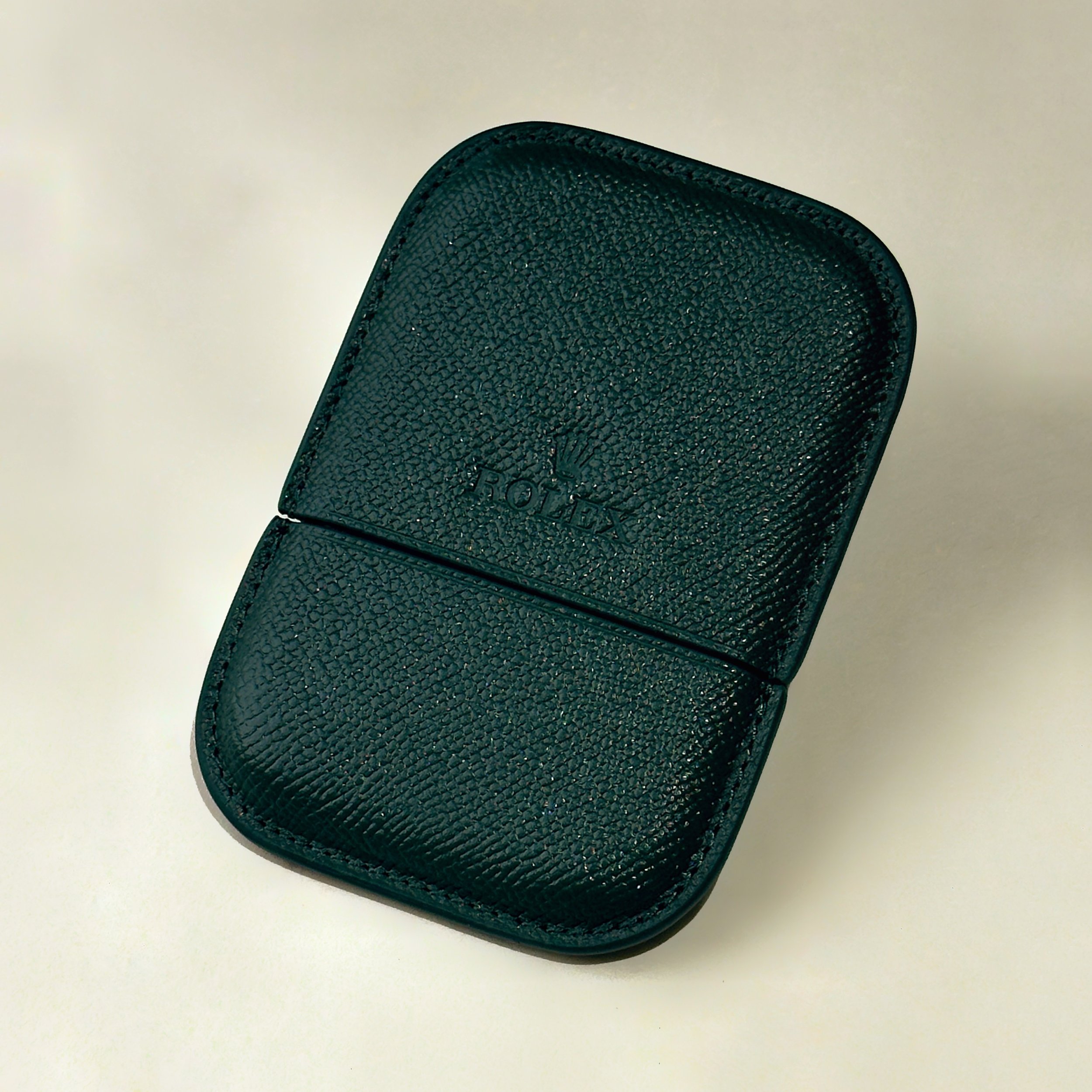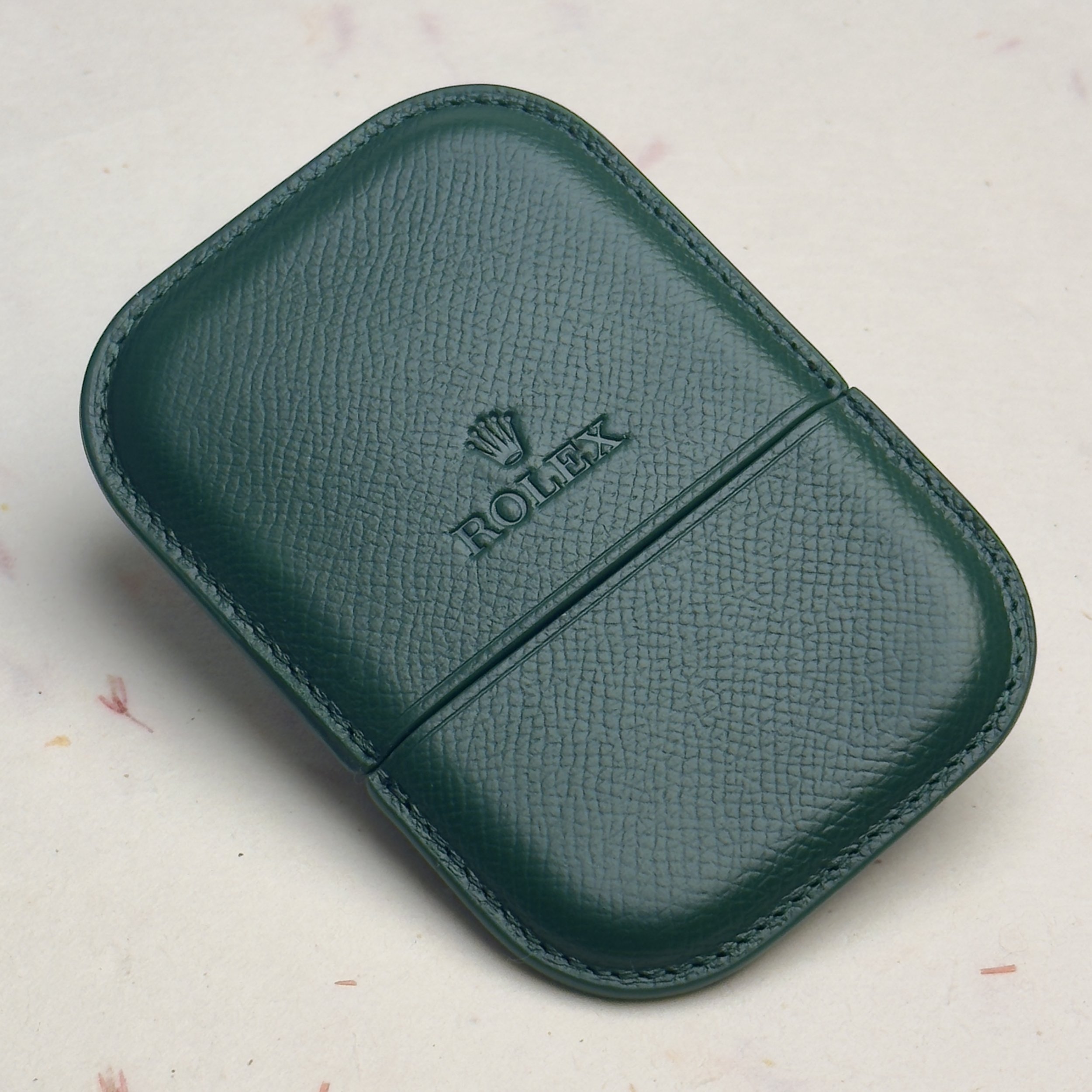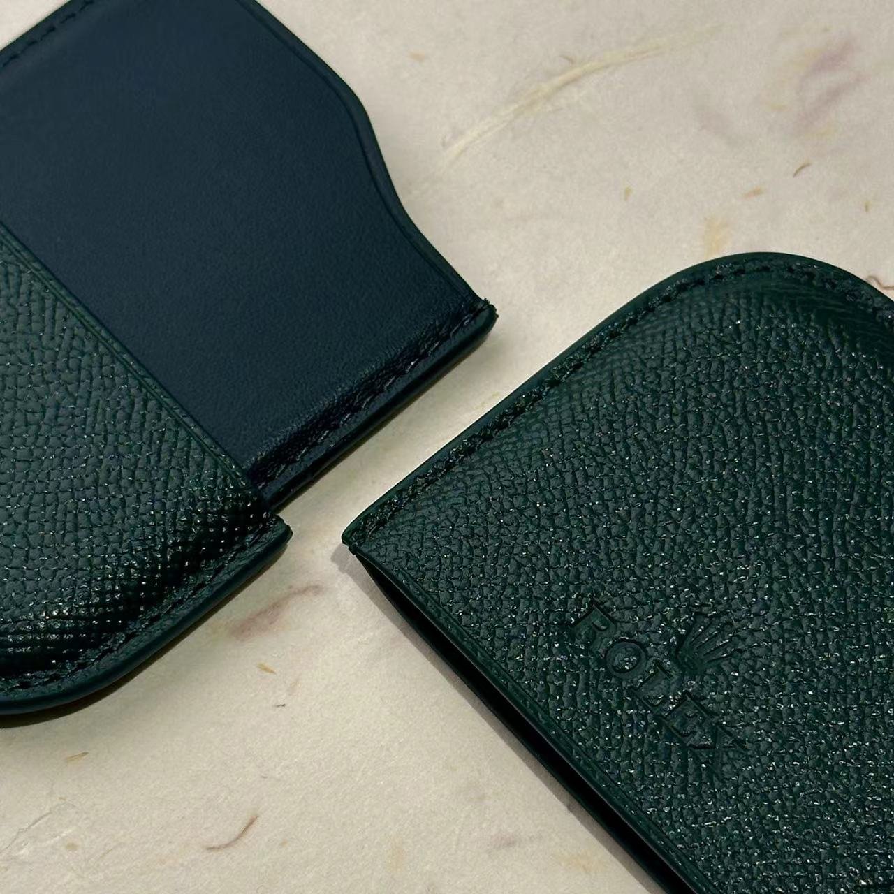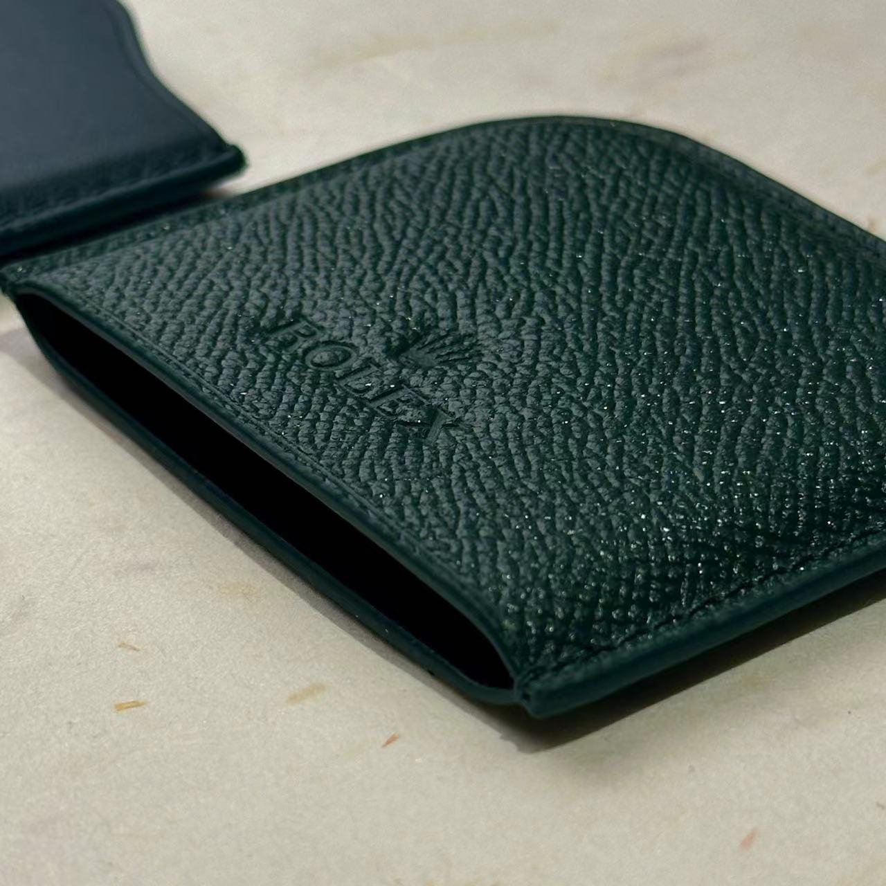 This exquisite green oval card holder proudly features the iconic Rolex logo on its facade, offering a discreet nod to its prestigious lineage. Designed to seamlessly accommodate 3-5 cards, its elegant contours and durable construction make it an indispensable accessory for the discerning individual. Beyond its allure, it stands as a tribute to Rolex’s enduring legacy in luxury, merging functionality with unparalleled elegance.