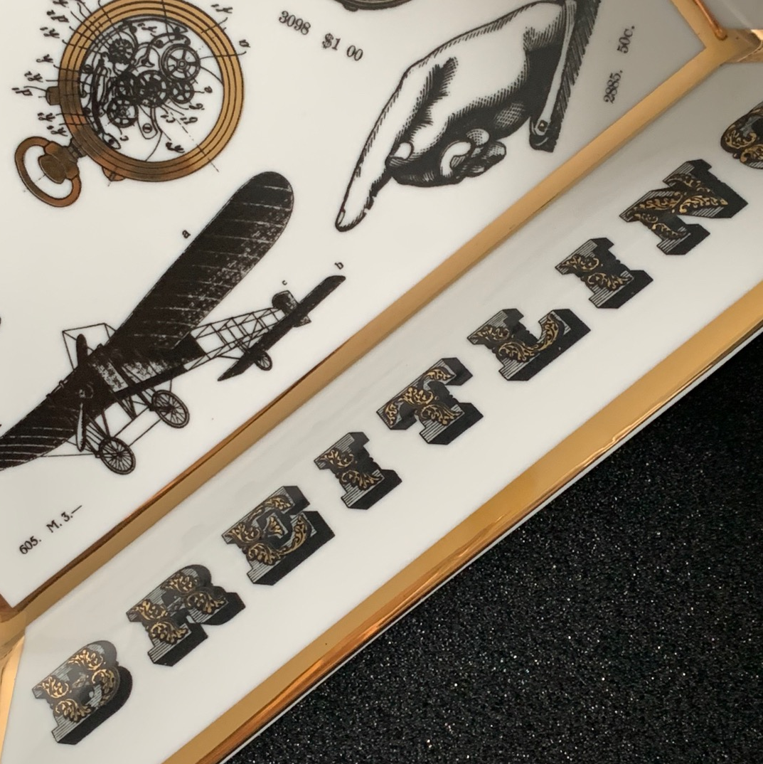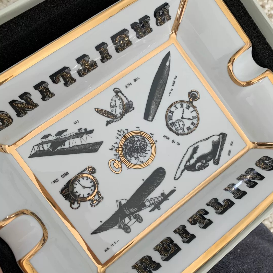 This Breitling cigar tray exudes a vintage charm and is a nod to the brand’s rich history in aviation. The tray is elegantly designed with motifs of the classic Breitling watches, aviation instruments, and aircraft, reflecting the adventurous spirit of the skies. Edged with gold trim, this porcelain tray combines functionality with the luxury synonymous with Breitling.