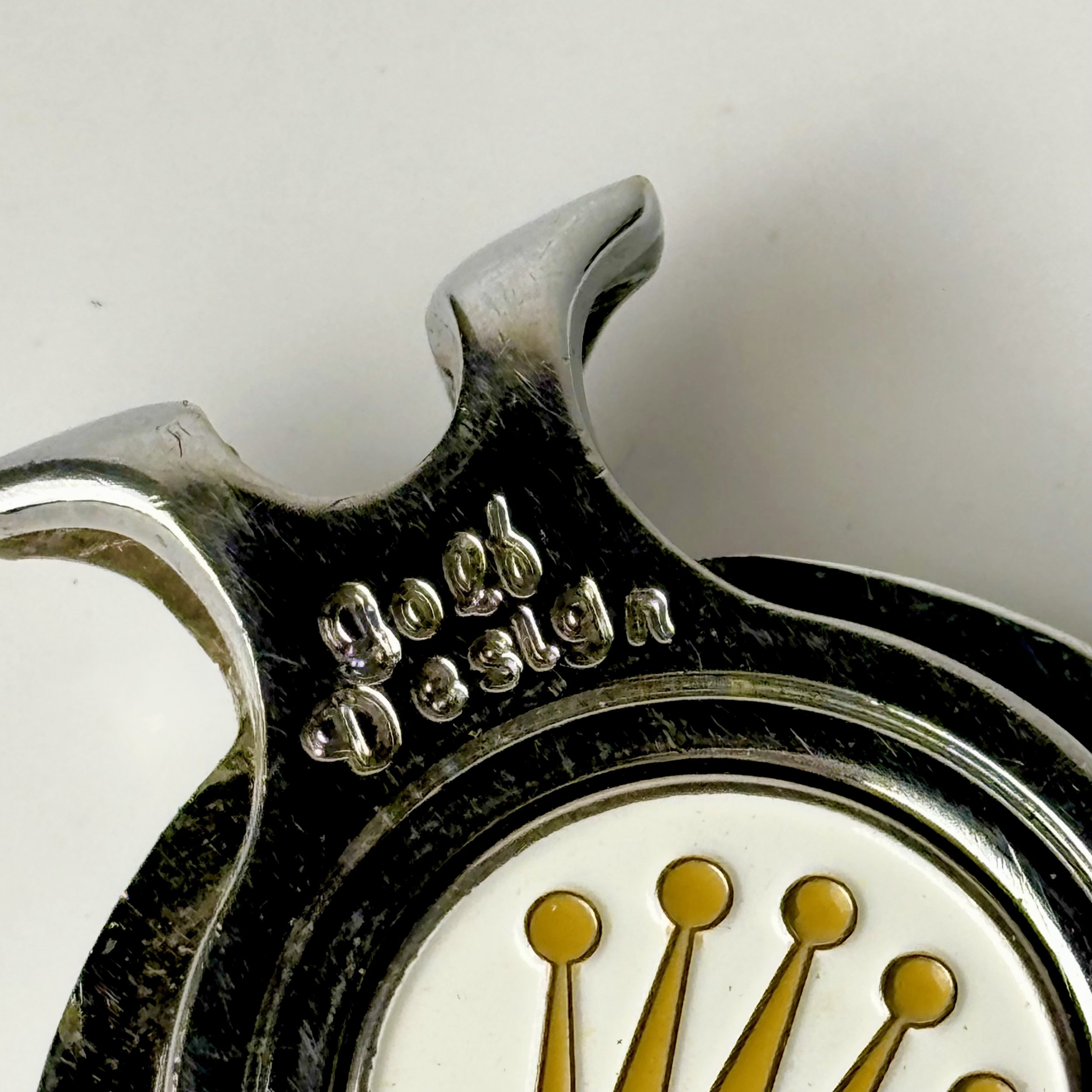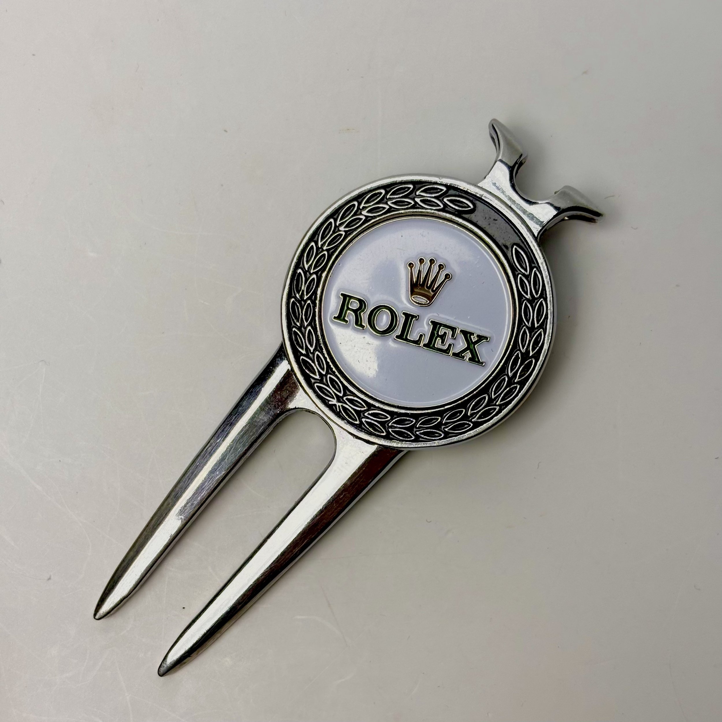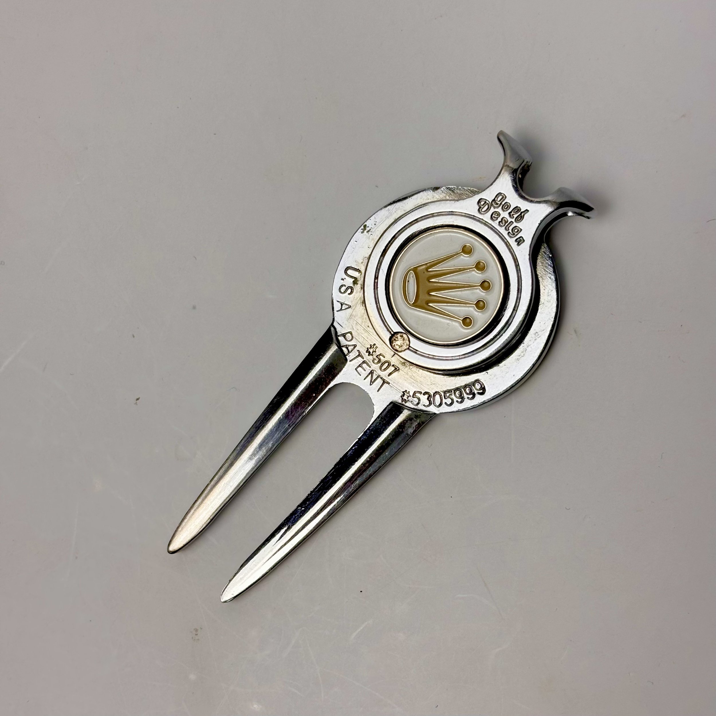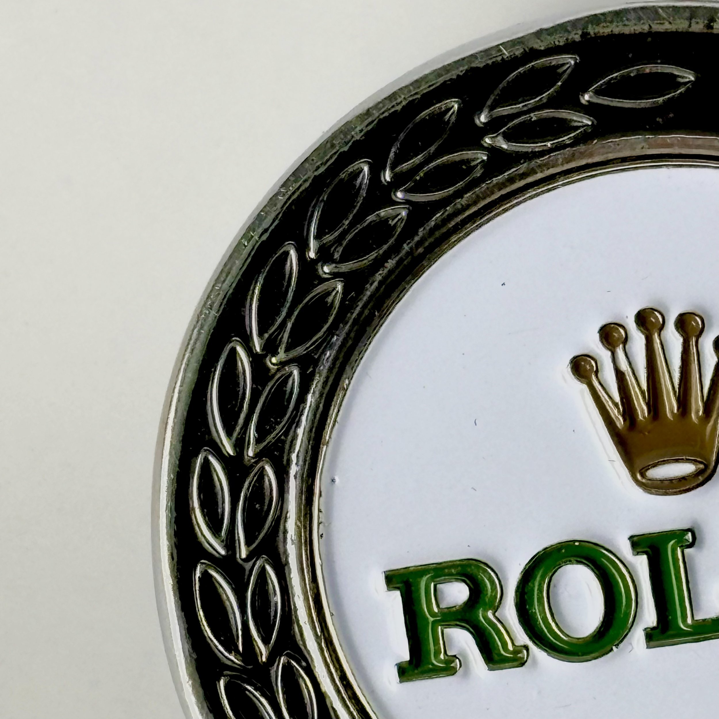 This Rolex golf tee marker, from the year 2000, is a memento of timeless elegance and a nod to the brand’s association with the sport. The sleek design and polished finish of this piece reflect the precision and luxury that Rolex imbues into every product.
