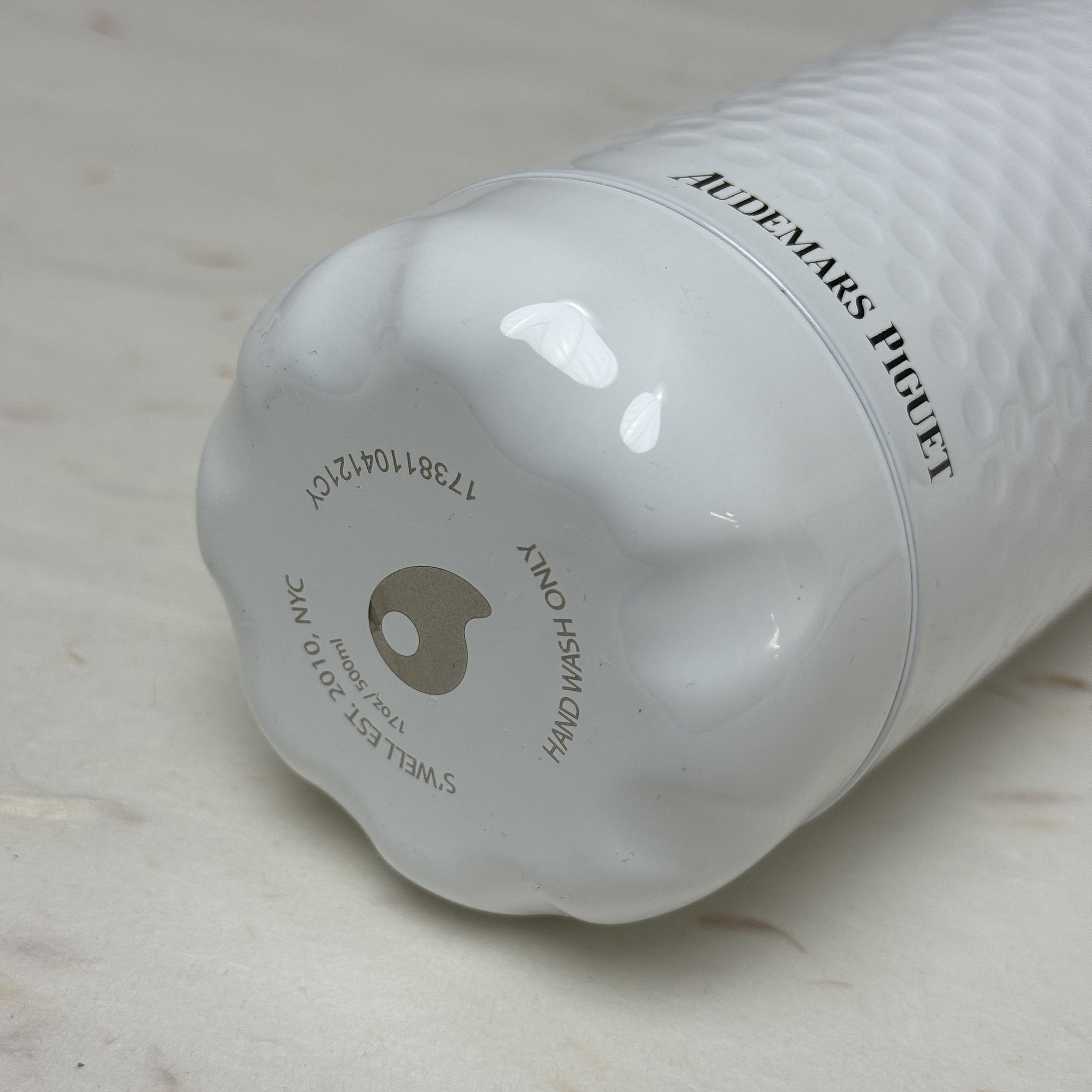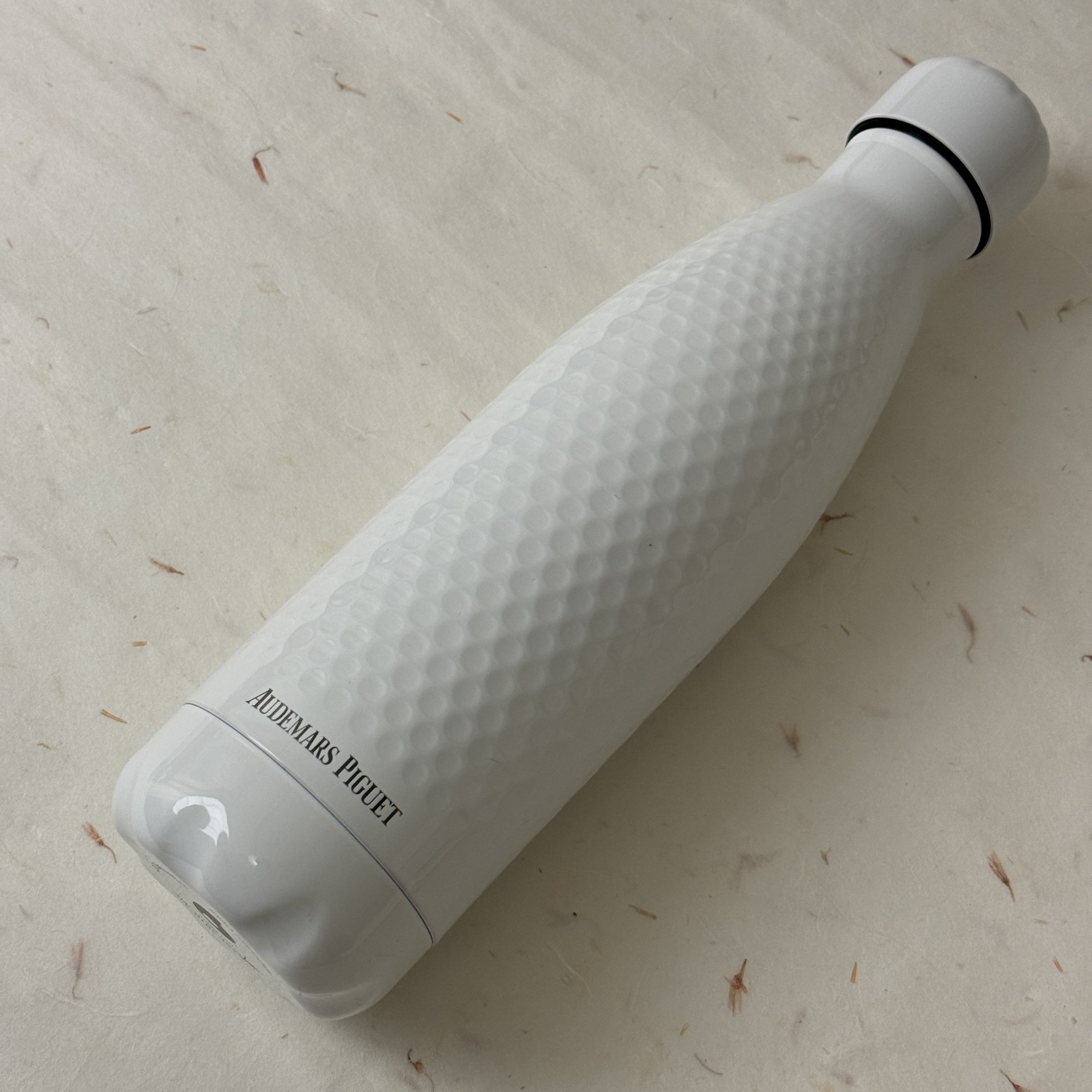 This limited edition bottle is the result of a collaboration between Audemars Piguet and S’well for a prestigious golf VIP event. The bottle features a unique golf ball texture, embodying the spirit of the sport, and is finished with the Audemars Piguet logo, symbolizing luxury and exclusivity.
